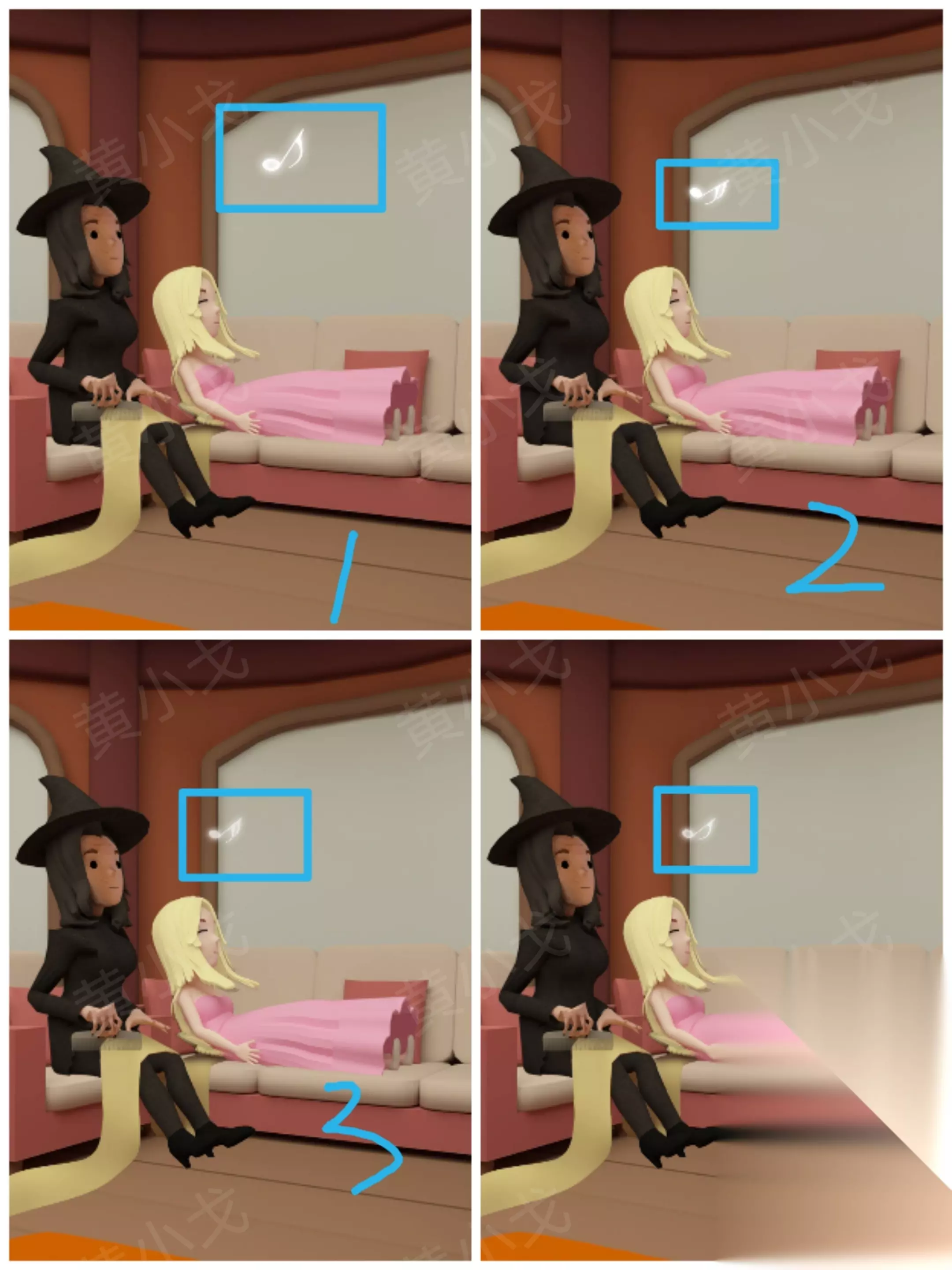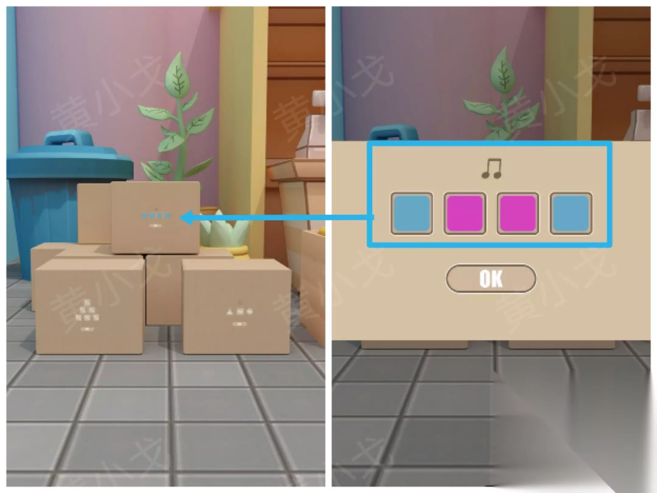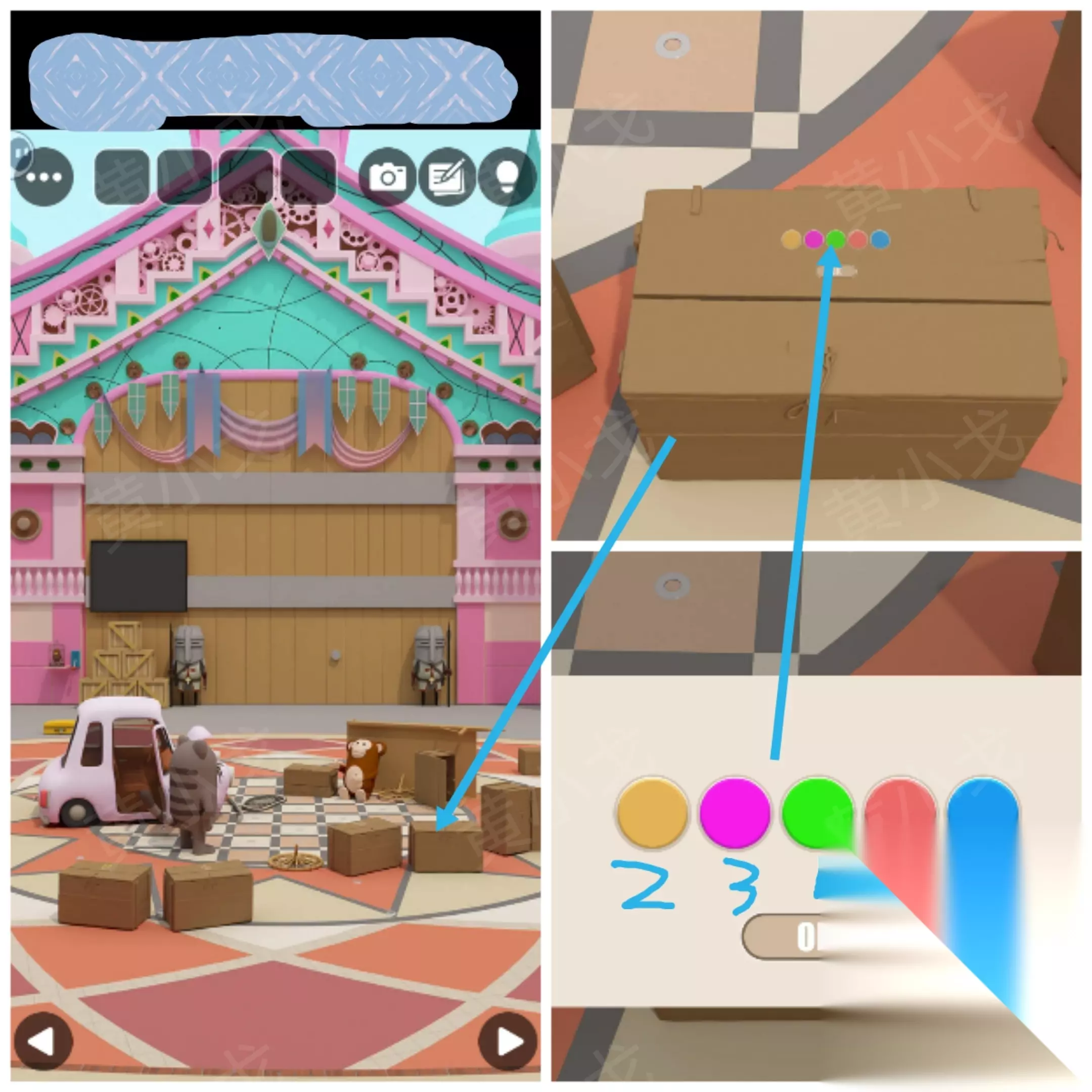 ⑬ 根据音符与蔷薇线索调整箱子密码锁:蓝粉粉蓝