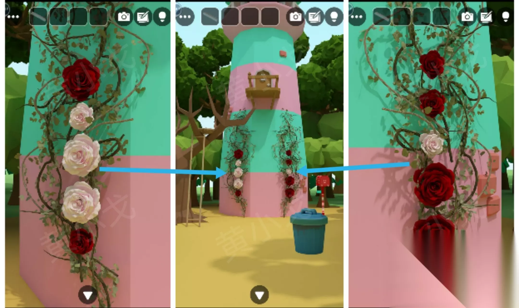 3. 城堡外场景 ④ 查看墙上的蔷薇图案
