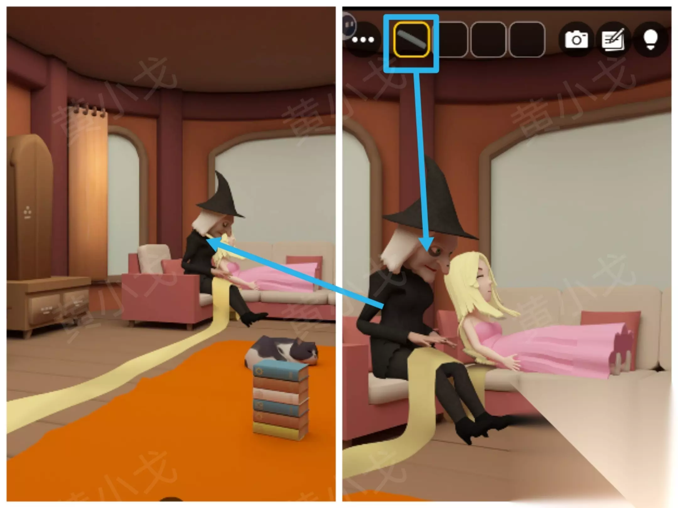 ⑧ 与老巫婆互动,使用【梳子】