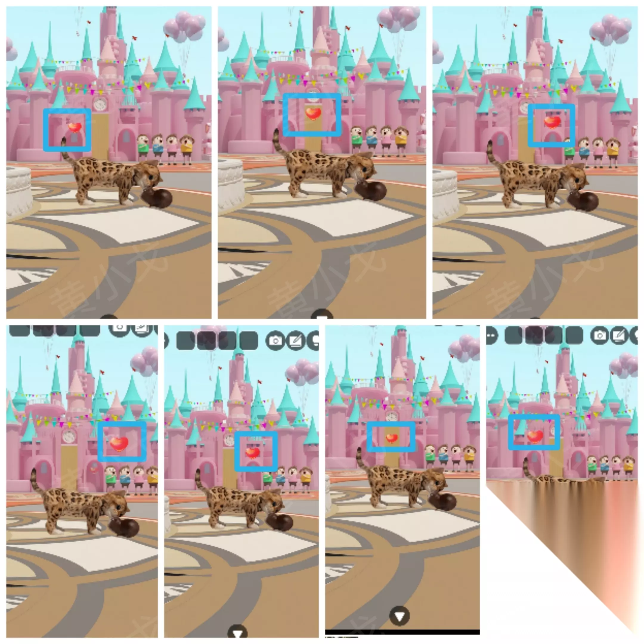8. 城堡场景(续) ⑲ 观察小猫爱心飘动顺序:1234321