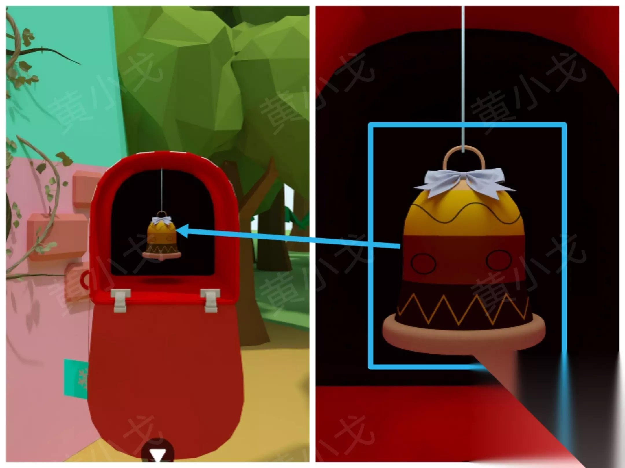 ⑥ 打开邮筒,敲响铃铛,触发头发下降机制