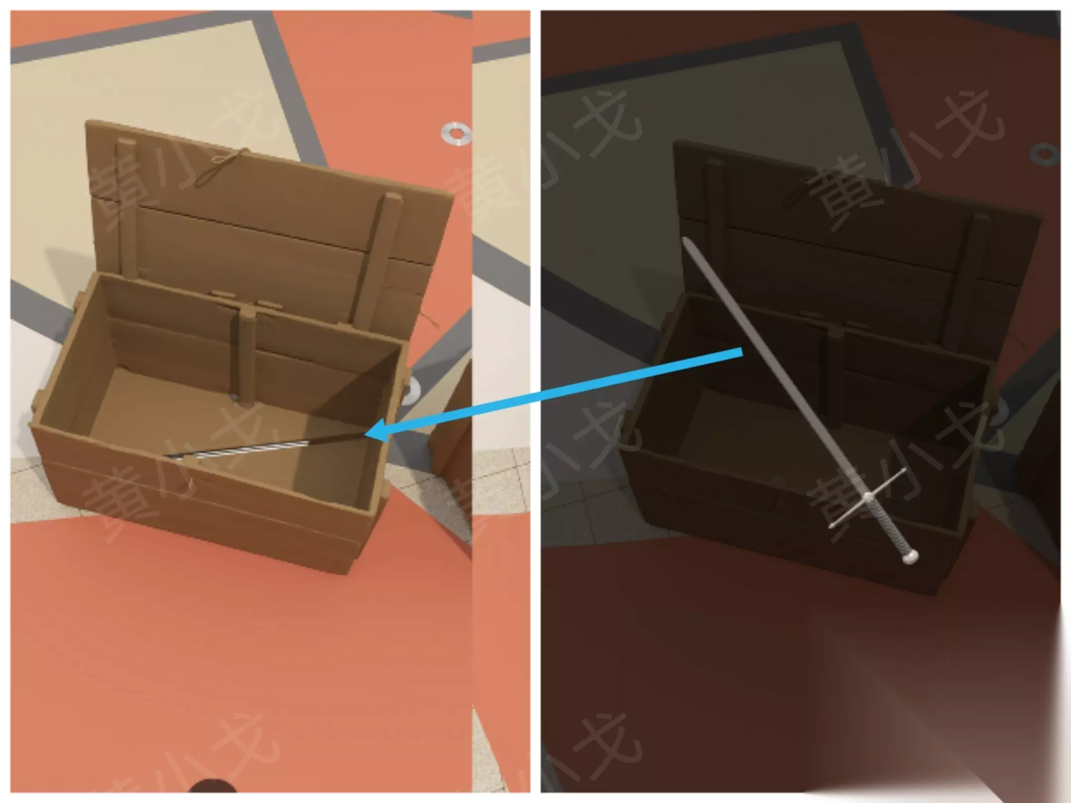 ② 打开箱子,获得【剑】