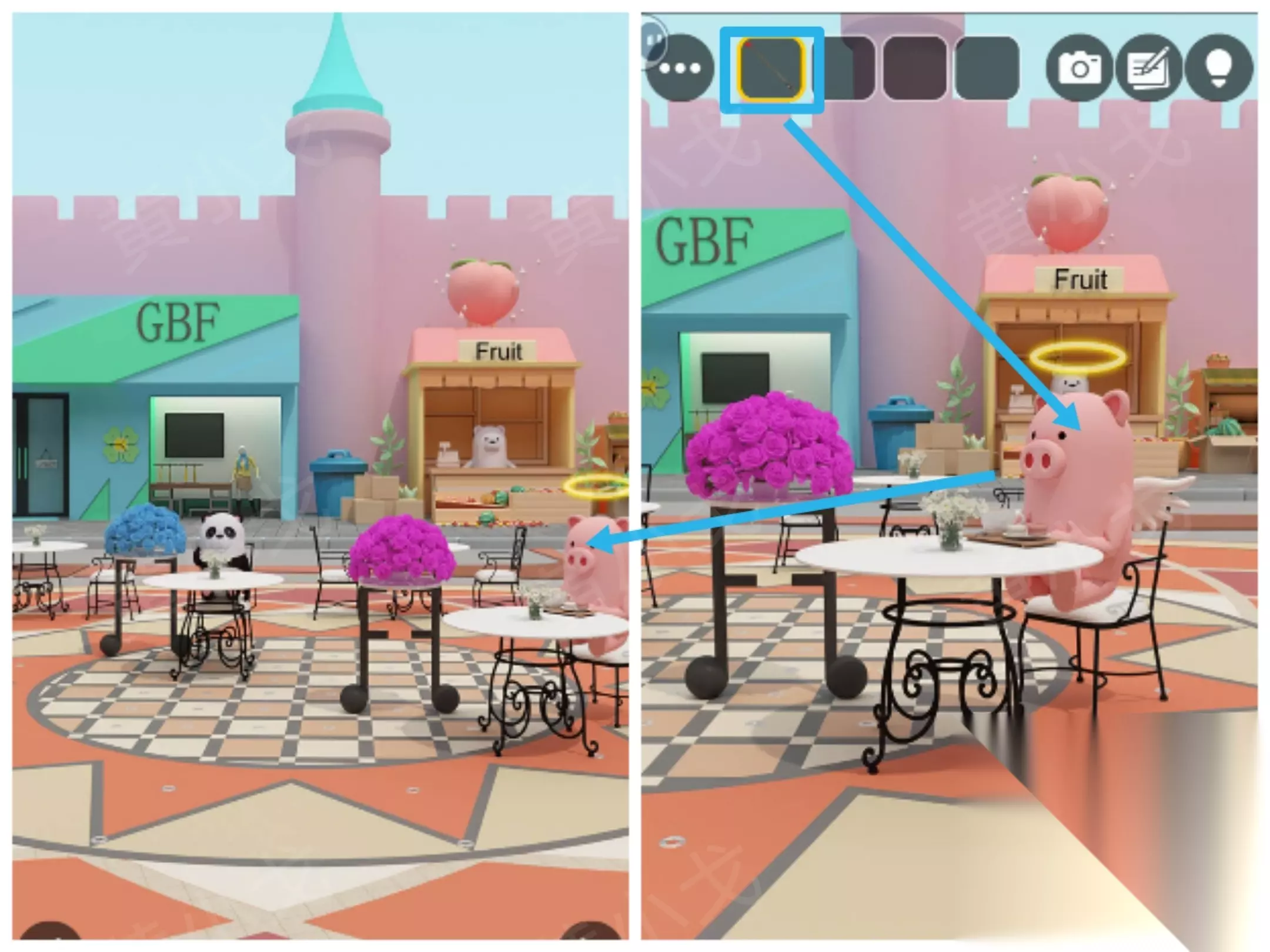 5. 商业街场景 ⑫ 与小猪互动,使用【箭】两次