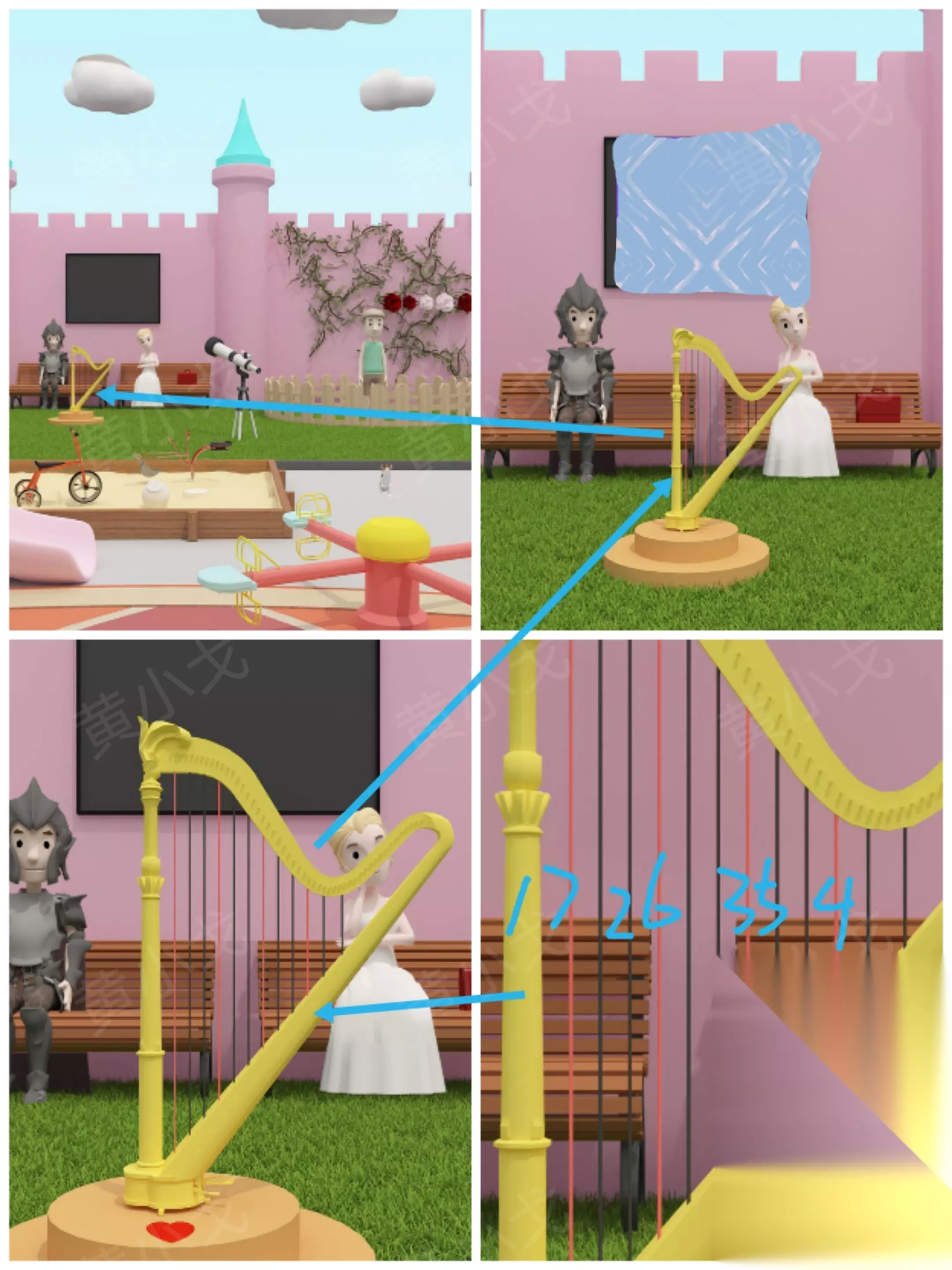 9. 儿童区场景(续) ⑳ 根据爱心顺序弹奏箜篌:1234321