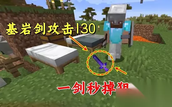 3、 基岩剑 伤害:1000000000 耐久:1000000001 攻击距离:4x4 用泥土即可制作,一击秒杀狙击手。