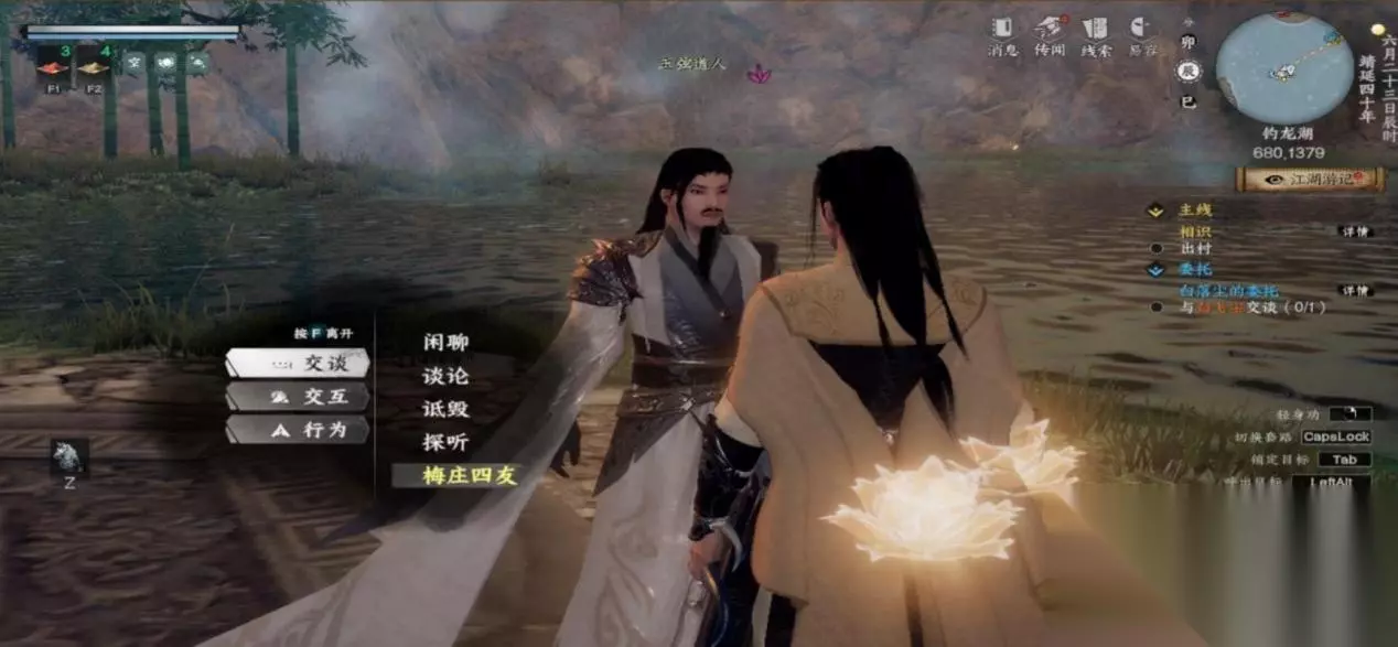 下一站江湖Ⅱ【江湖 2 攻略组】险恶新手最高难度保姆级开局全流程( 三)如下: 【江湖 2 攻略组】险恶新手最高难度保姆级开局全流程( 三) 本篇攻略由江湖 2 攻略组发布 ,转载请声明出处。 各位少侠大家好,今天继续带来新手最高难度保姆级开局 全流程,全流程攻略共分为六个章节,从人物天赋选择到 最后开启全部经脉,在于能让新手玩家快速入手游戏,进 入 自 由探索阶段。本次是保姆级开局全流程第三章,获取 前期功法 ,江湖身份晋升。 本攻略思路来自B 站 up 小蒋不忙。 一、吸星大法获取顺道搞钱 1.传送到太初剑宗,去钓龙湖中心找玉弦道人(678.1379) 交互,跟随指引每个坐标都去触发,对话完成后获得吸星大 法。(感悟书都可以吃了,修为留着,把功法学了装上)