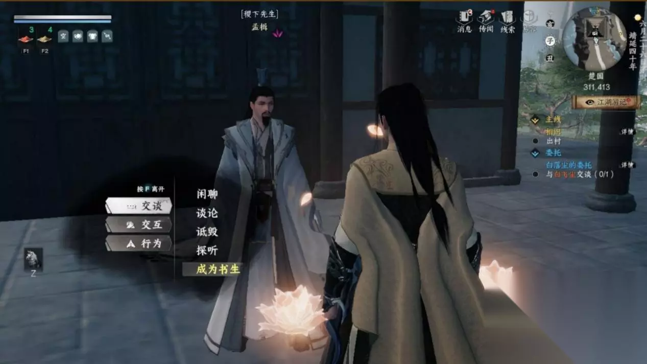 3. 找砚溪山庄孟楫(311.413),交谈成为书生,再交谈晋升 童生。