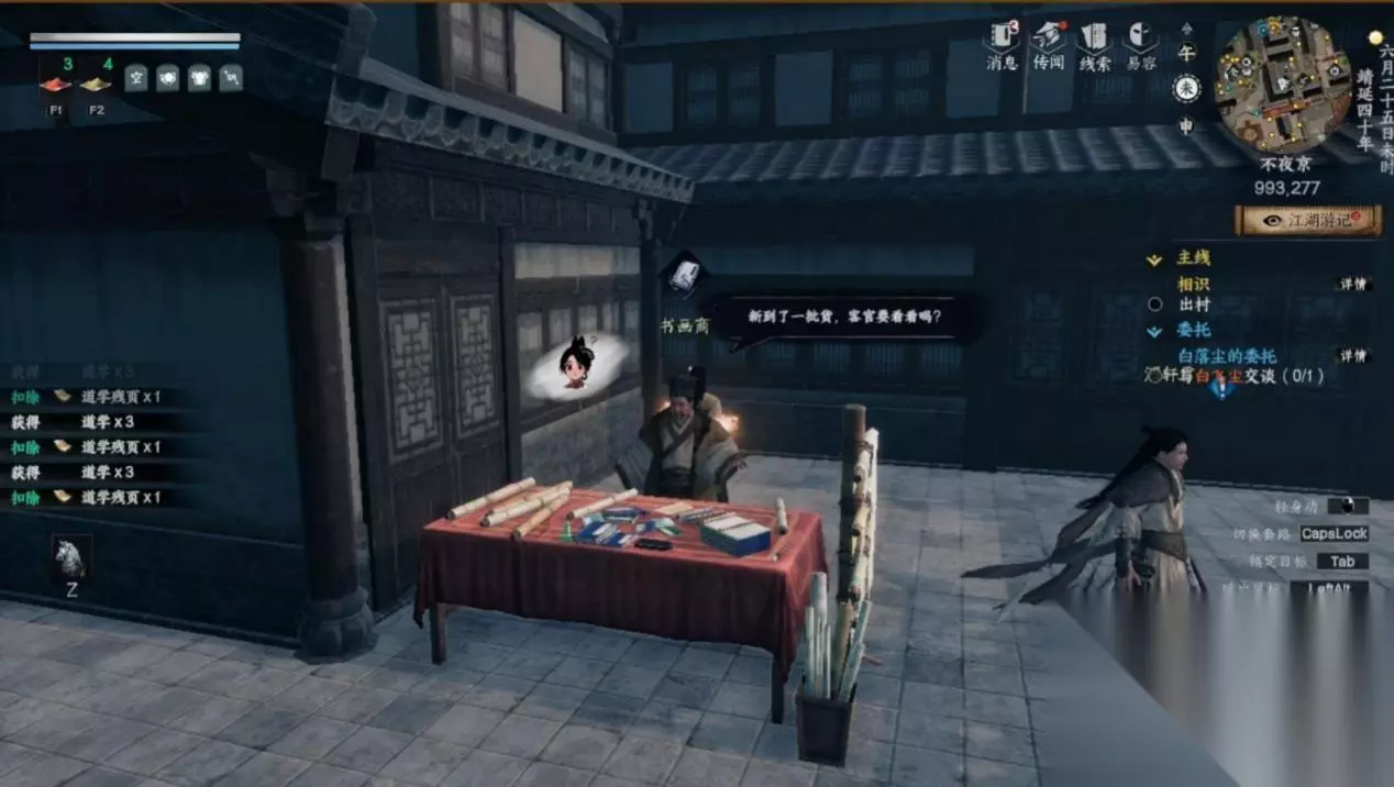 2 枰栌书画商(931.770) 买儒学残篇、残页两种各 3 组,画匠(920.812)买道学、炼丹、酿酒、墨学、一阶空白 画卷( 144 个就行,嫌麻烦就买四组 45 个),游吟(871.794) 买画道和道学书,书画商(949.902)买道学、炼丹、酿酒、 墨学。