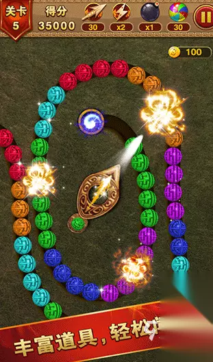 游戏里有很多漂亮的珠子,大家在玩的时候需要操控柱子发射器,把这些珠子发射到一串串的珠子里,只要三个或者是更多颜色一样的珠子挨在一起,就可以消掉一组。游戏里的关卡特别多,每一关的珠子布局也都不同,而且难度还会慢慢的增加,特别考验大家的安排能力。每一关结束后,游戏还会给大家一些道具,用了这些道具消除只会变得更加轻松,可以帮助大家更快的通关。 高速下载 普通下载 优先233乐园APP下载 3、《祖玛传说》
