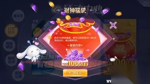 2.购买财神福袋可以获得一定的钻石。