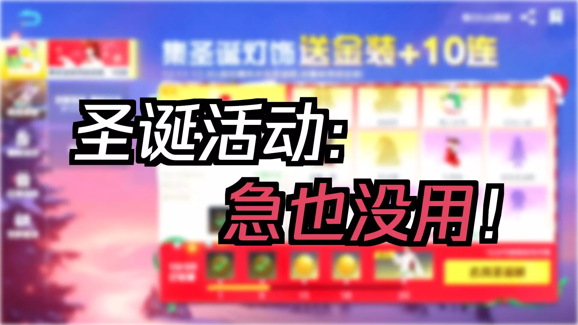 这是《荒野行动》的圣诞活动情报,活动期间登录可领十连抽与金品礼盒,还有圣诞随机金品礼盒、圣诞耶耶、雪域驯鹿等返场军需礼盒,军师将帮玩家选择合适礼包。