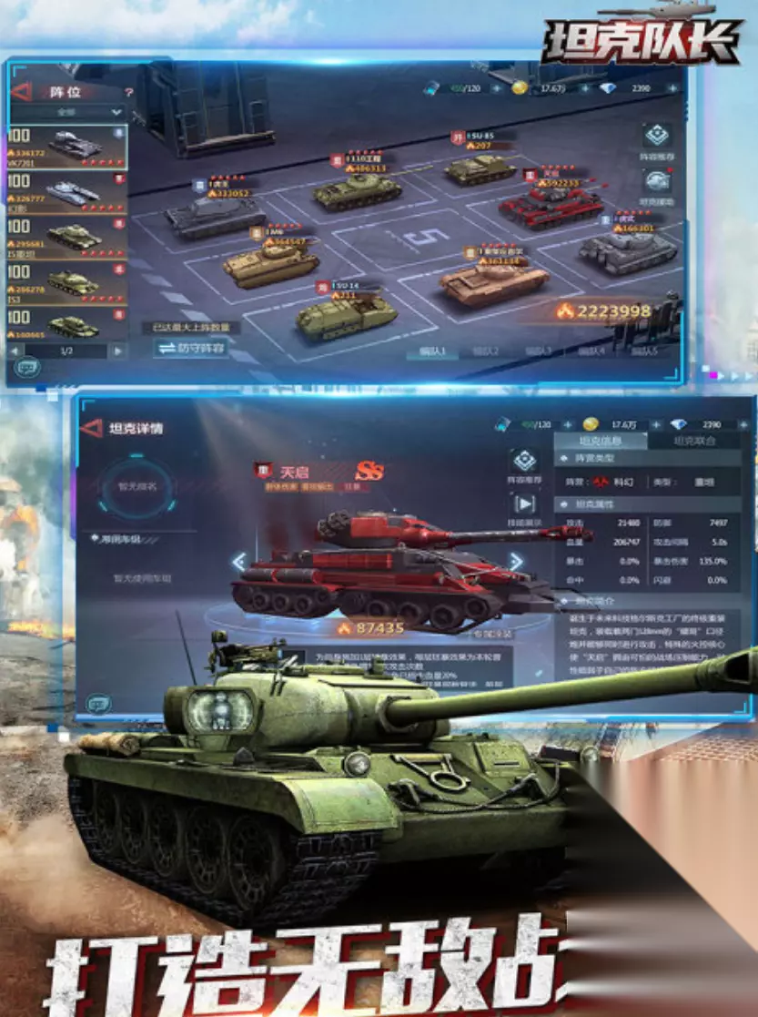 3D引擎打造的Q萌坦克建模精致,光影、爆炸、履带碾压特效细腻。战场是随机生成的3D大地图,有高低起伏建筑桥梁障碍物,全场景可破坏。墙壁树木堡垒都能轰碎,可以主动改变地形制造掩体或阻断敌人路线,物理引擎真实。坦克爬坡转向碰撞反馈自然,不同地形影响移动速度和射击精度。 手机扫码下载233乐园APP预约 预约订阅最新动态 优先233乐园APP下载 5、《坦克队长》