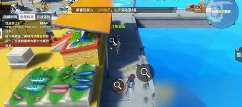 3、三朵蓝白“花朵”的聚会 前往生活区,在右侧,可以经过一座桥,找到三把太阳伞,也就是任务里的三多蓝白花朵,调查即可; 4、美味对决的舞台的背后 进入料理区域,如下图所示的摊位,调查获取线索;