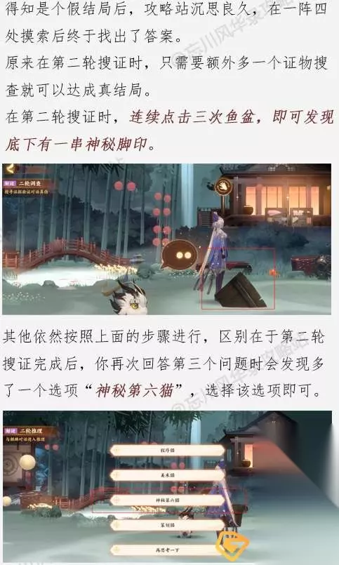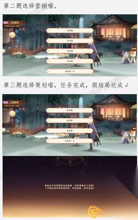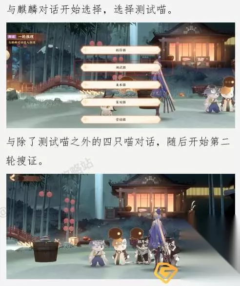 《忘川风华录》忘川摸鱼大赛解谜攻略 1、首先玩家需要分别和五个猫咪对话,通过一轮询问从而获取到线索;