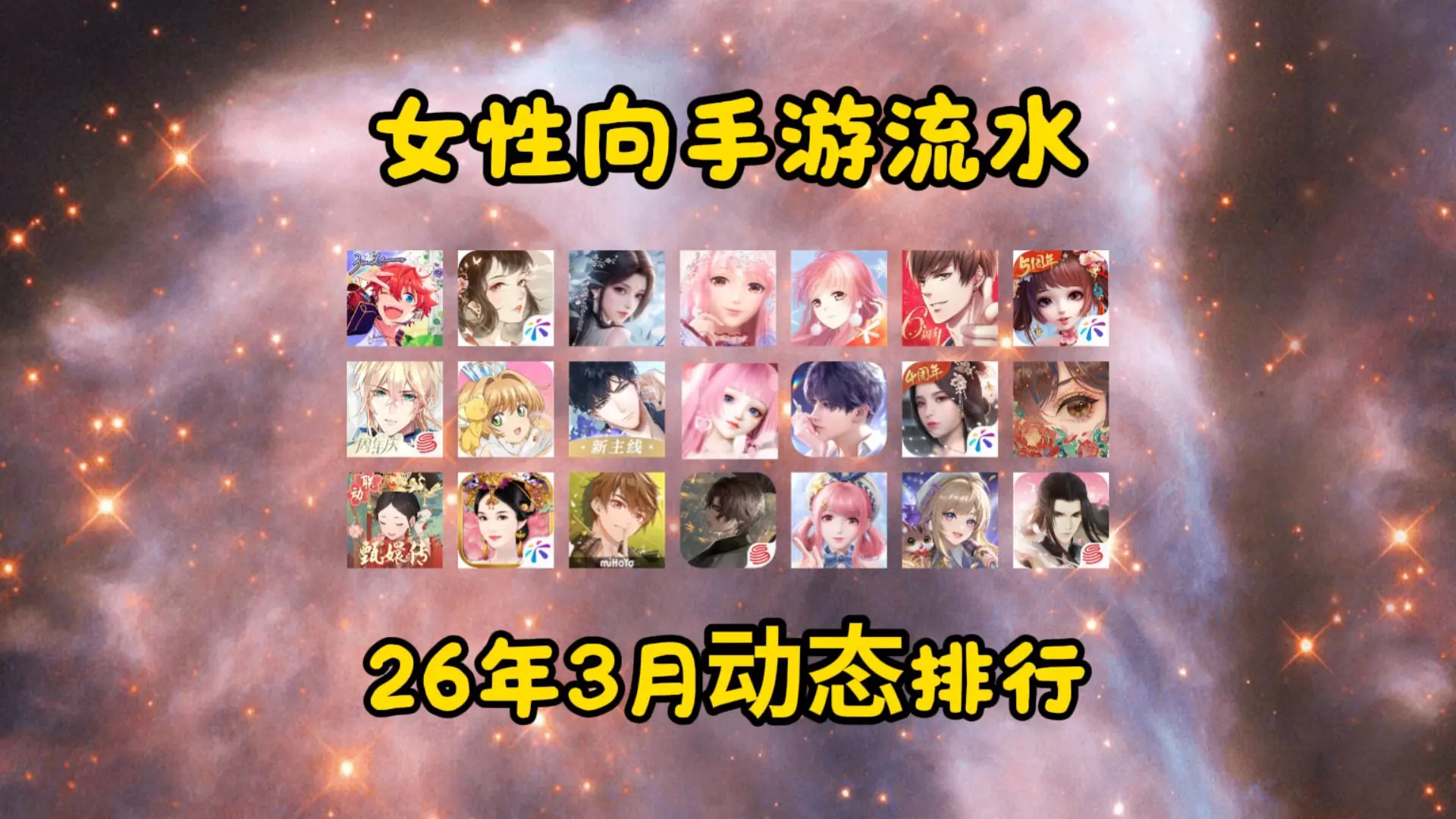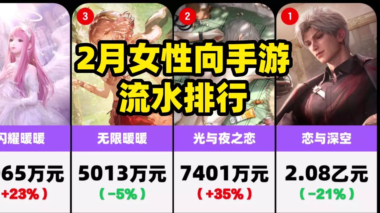 近50款女性向手游流水每日动态排行可视化 统计时间2026.2.28-2026.3.30,数据来源sensor tower,排名越前的手游流水失真越大,所以仅供…