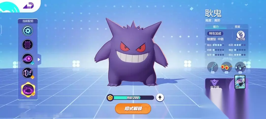 ”电球”会投掷电气团攻击敌人,如果敌人体力剩余越少,对其造成的伤害越高。”打雷”这个招式会劈下雷暴攻击对手,造成范围伤害。”伏特攻击”同时电流覆盖全身,并对敌人猛烈撞击,将敌人击飞。”十万伏特”会放出强烈的电流攻击敌人,并且让对手宝可梦无法动弹。”万钧伏特”会轰下雷暴攻击对手。 图鉴二:耿鬼 耿鬼是一只敏捷型的宝可梦,比较适合在中路打野,作为一个刺客型的宝可梦,比较擅长在团战当中,寻找敌方的后排,并且找准时机击杀,给团队找到合适的突破口。他同时也是一个操作相对来说比较简单,适合萌新入门上手的打野。普攻低三下也是会强化普攻,伤害不俗。他的“漂浮”,能加快自己刷野以及支援的能力。比较推荐“食梦暗影球”的配招,爆发性高,兼具了回复和机动性。