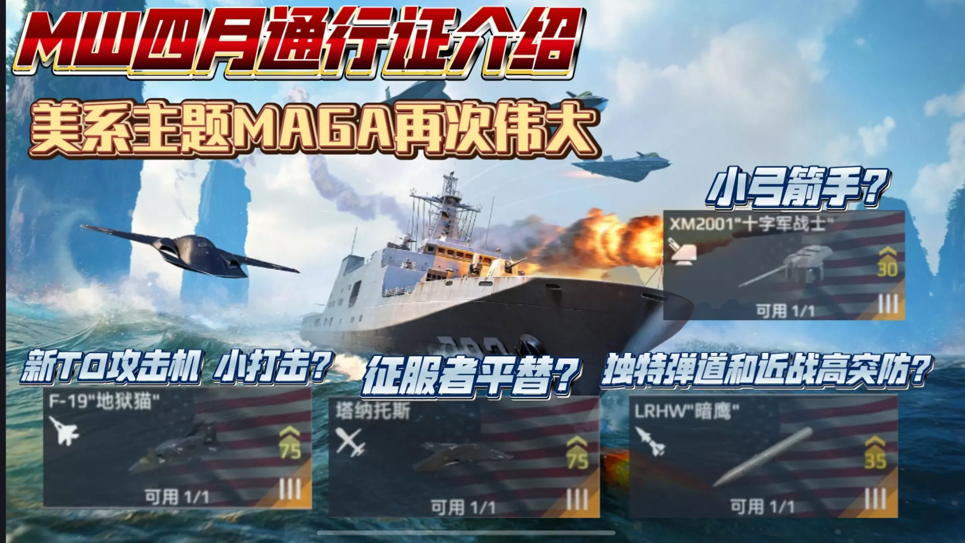 简单的测试介绍了现代战舰四月通行证的新装备 十字军战士 暗鹰 塔纳托斯 地狱猫 感谢@叩首称王SP 和@我不吃西梅 参与创作