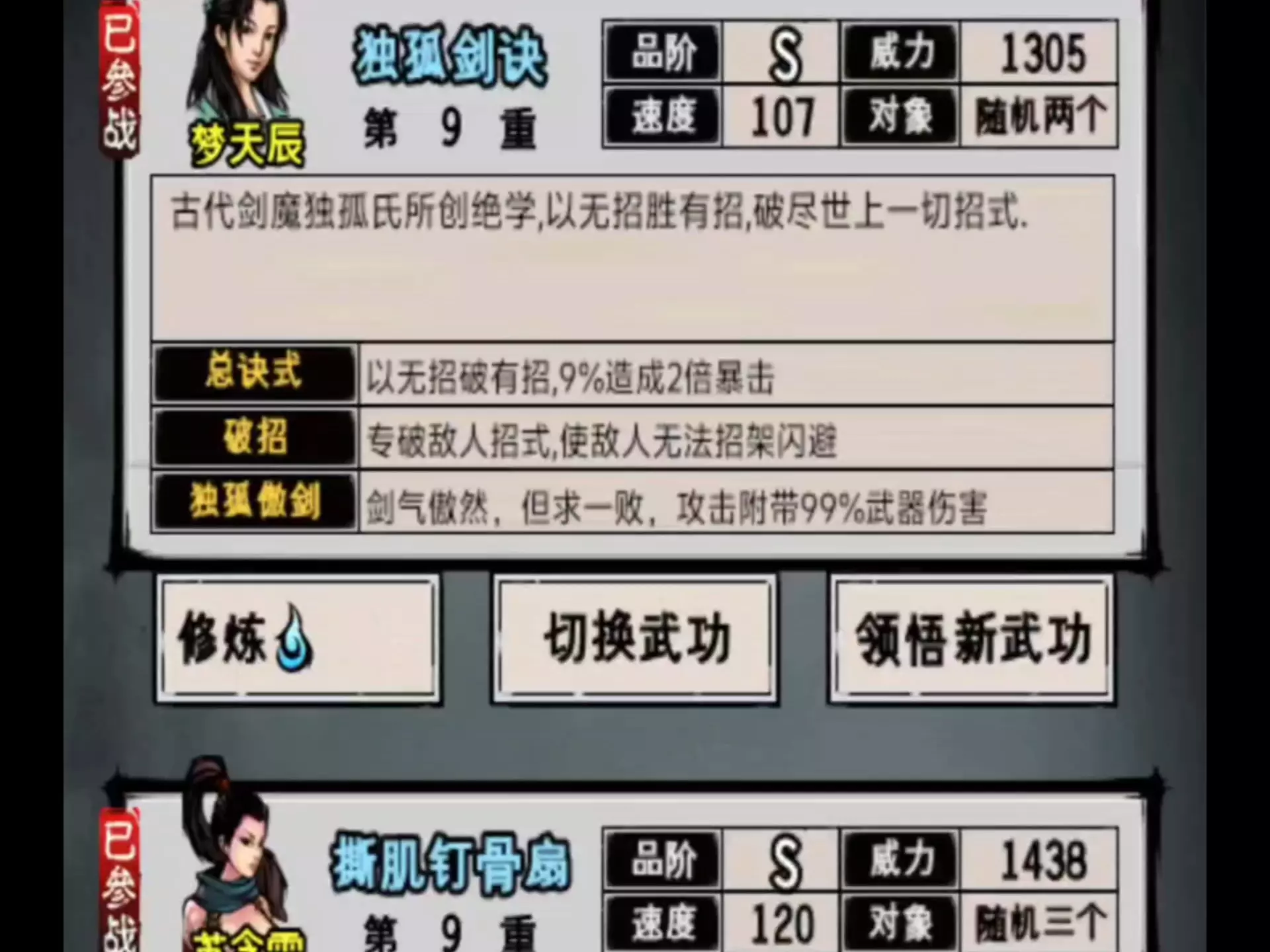 下一站江湖2,无属性剑法4小时速通险恶模式最高难度镜无双,目前强度是仅次于降龙十八掌之下,剑法能否击败镜无双主要在于镜无双有没有出飞剑
