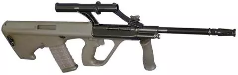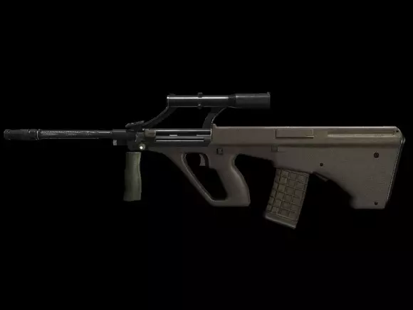 Steyr AUG A1 原产地 : 奥地利 制造商 : Steyr 口径 : 5.56mm NATO 容弹量 : 30 发 最大备弹量:90 有效射程(CS) : 727 rpm 重量(LOADED) : 4.09 kg 重量 : 4 grams 初速度 : 2900 英尺/秒 枪口动能 : 1570 焦耳 特殊武器功能:1.4倍放大 杀伤力:28 装甲修正:0.18 弹夹更换速度:3.39秒 射速:8.47发/每秒(正常模式), 6.35发/秒(狙击模式) 备注:中距离点杀威力恐怖,要好好练习!就是。。。换弹夹太慢太慢了! 只有CT才能购买。用来和Commando来抗衡的利器。 点评:AUG,造型最为前卫的枪,对了,高手一般都不开镜打。感觉不开镜反而瞄的准。个人喜好吧。一般我当CT是不会买AUG的。