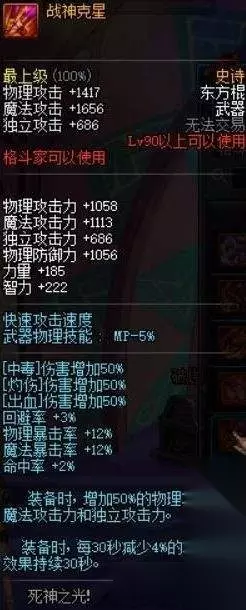 DNF90级全职业史诗武器排行收益大点评,90级版本开放也有一段时间了,相信不少肝帝已经肝出了自己的90级史诗武器,那么哪个90史诗属性最逆天,最适合自己呢?和小编一起来看看DNF90级全职业史诗武器排行收益大点评吧! 【T5线武器】 top.30 [死亡冰柱] 15%冰白,2级一觉被动,以及几十点冰强和减冰抗效果,但是你好歹也是90级史诗好吧,看看隔壁的黑手先,垫底没说的