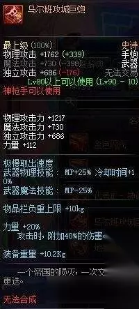 top21 [乌尔班攻城巨炮] 超级重的大炮,属性简单粗暴20%力量40%白字,然而,仅此而已,据说激光狂热者比这个还好用