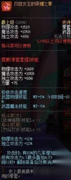 top6 [贝兹女王的荣耀之拳] 之前我原以为可以进前三,直到我看见了法师的大威利,48%所有攻击力,虽然要叠加。但是基本全程的,2级2觉12%物理独立攻击力,厉害了我的姐,鬼剑士的也才42%所有攻击力(我说的42%最高是直接增加最高,而这个需要叠加)