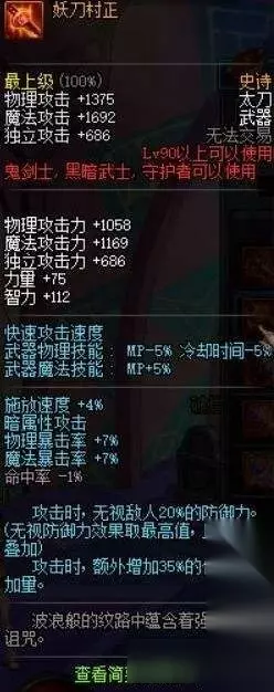 top23 [妖刀村正] 鬼剑士亲儿子的武器90级无限疲软,难道是85版本坚挺过头虚脱了吗?20%的无视防御看似很高,但是这会冲突啊,而且组队的话,鬼泣之类的减防职业很容易直接废掉这条属性,总得来看也就35%不冲突黄字能看了