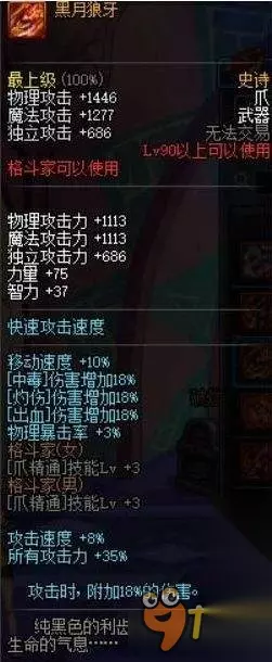 top10 [黑月狼牙] 街霸的招牌3异常伤害蚊子腿提升暂时不看,爪精+3,技能攻击力+35%,附送18%白字,那么问题就来了,荒古没魔能不是辣鸡是什么呢