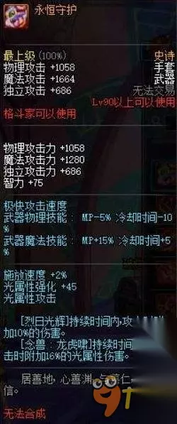 top28 [永恒守护] 16%光白+10%白字,还有45点光属性白字,好歹人家魔杖面板还高,这手套16%光白要不是还有10%普通白字撑着和冰柱也是一个窝里的