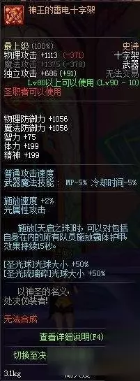 T5线武器更新完毕,接下来是T4线的武器 【T4线武器】 top24 [神王的雷电十字架] 大仓木,这武器不差,奶爸的第二追求,第一是荒古,但是没奶爸会带着这个东西输出吧,辅助类武器很难比较,放这里算是补空位吧