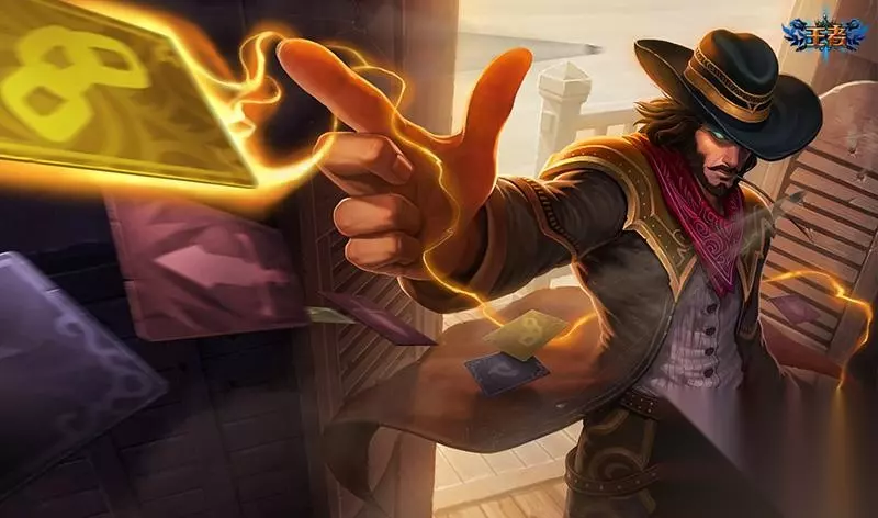 售价:79。有5折。凯南皮肤一大堆,感觉都很廉价,质感也抄底,没一点意思。但是腥红之月绝对是完美的一匹。红色闪电,加大范围技能特效,好的没话说。 13. 西部牛仔卡牌
