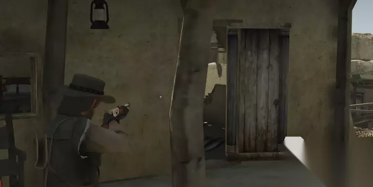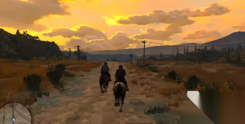 回到这款游戏上来,在给大家分享游戏流程之前有必要告诉大家一些游戏基本的操作与技巧,游戏里主要的通行工具是骑马,玩家需要保持马匹的健康,喂食,清理提升信任度,这样才能让骑行更为顺畅。然后是武器的使用,调出武器轮盘然后选择武器,长按瞄准并调整视角。主角还有一项“死亡之眼”,简单来说就是类似时停的慢动作射击,可以提前瞄准射击目标完成精准射击。