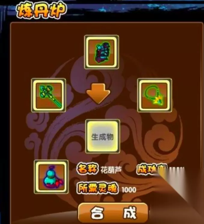 宣花葫芦合成:宣花坠+宣花锤+宣花袍 材料获得: 1、【宣花坠】:点击进入“天宫道”,在这里先清除小怪直至Boss,击败boss就有一定几率掉落宣花坠。 2、【宣花锤/宣花袍】:玩家击败“南天门”最后的boss巨灵神,有几率获得宣花锤或者宣花袍。