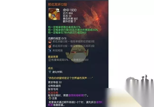 三,“邪花首饰12段”及各职业“极限卓越邪花首饰3段”的属性 一)邪花项链12段和邪花耳环12段