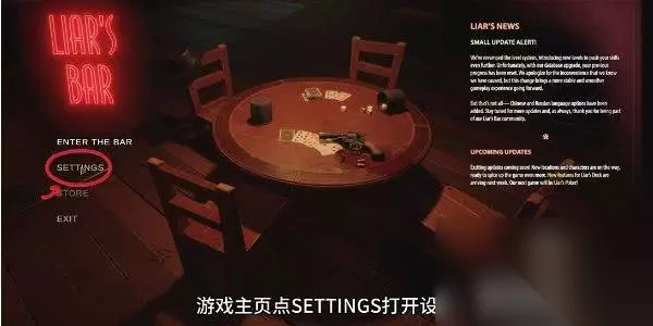 2、进入游戏主页面后点击“SETTINGS”进入设置界面。