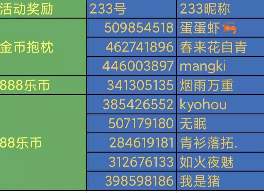 三等奖:88乐币*5