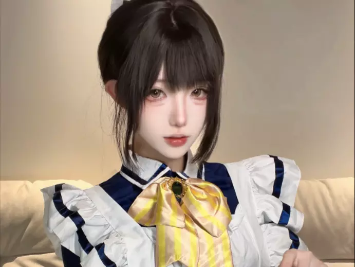 这是一组四季夏目主题的Cosplay图文帖,展示了博主身着蓝白女仆风格的四季夏目cos服装,在楼梯、座椅等场景的自拍造型,属于正常Cosplay内容。