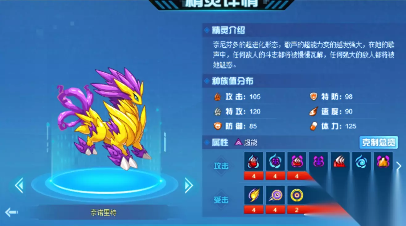 开创机制的精灵,在以前的话如果没有顺风优势,可能投入PVP实战靠药来打血的效果并不大,所以导致大部分玩家并没有携带这个技能。但放在现在的话,瀚海的完全体进阶是把反噬、封回血和反向吸血粉推向了一个高峰,空前绝后的技能效果专治靠打血站场的精灵。 奈诺里特 奈尼芬多的超进化形态,2014年卡修斯封神之路时期的精灵!魔灵王大举进攻,无数的精灵被魔石控制,然后卡修斯就成了当时最耀眼的一个主角,奈尼芬多借势超进化,还是经典十二轮,入手简单,玩家可轻松进阶自己的奈尼芬多。