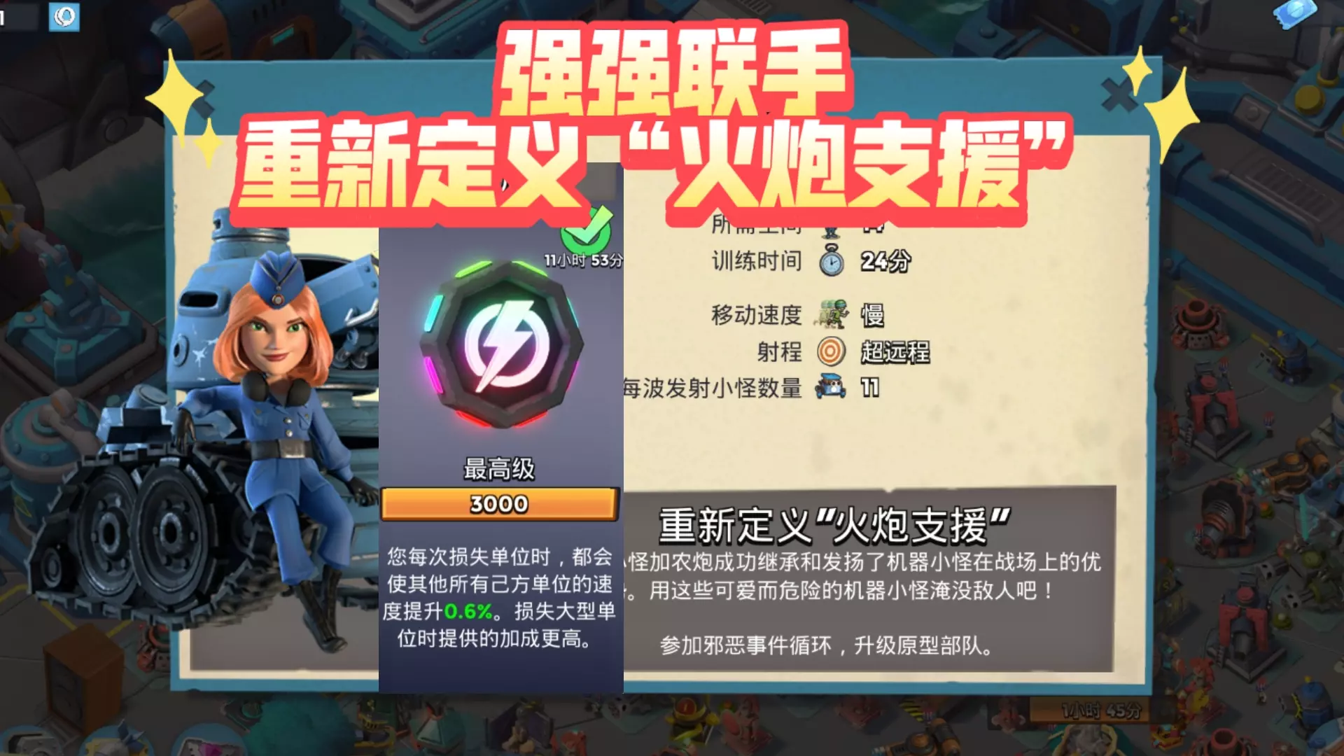 这是策略游戏《海岛奇兵》的玩法展示,25级步兵在加成后血量接近1600,借助人海战术,纯步兵平推恐怖博士阶段关卡、爆本都十分顺畅,展现出高血量步兵的强悍战力。