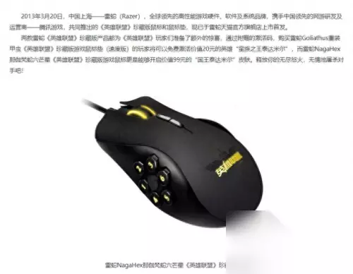这是2013年英雄联盟发布的与雷蛇产品的合作公告。