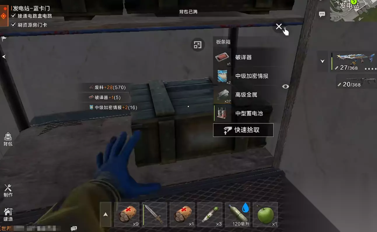 绿卡房其实就是发电站右侧铁轨旁的高层建筑,该建筑的大门需要绿卡才能进入。进入建筑后,直接上3楼,可以找到蓝卡房。在右侧走廊可以找到另一个电路盒,完成解密后激活蓝卡房开关。使用蓝卡开门后,可搜刮高级物资,如医疗包、电路板等。