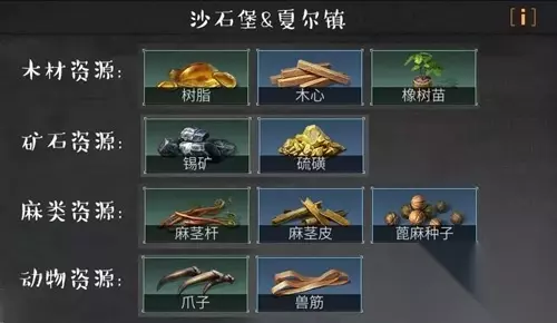 资源获取小贴士 1.沙石堡的资源集中在哪儿? 沙石堡地图上的两处绿洲,就是有水这片区域的岸边,动物,树和果子会集中在这一片区域。