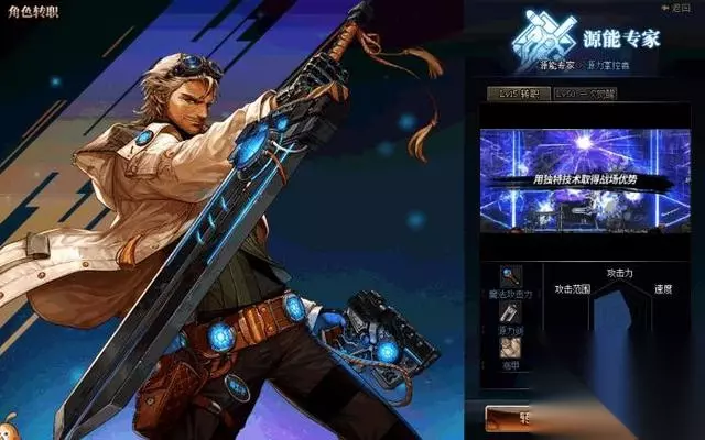 这是一个使用重剑,重甲精通的职业,是4个枪剑士中攻击范围最大的一个职业。 这个职业的技能基本都和散弹枪、炸弹有关,充分演绎了爆炸才是艺术这一个理念。 除了最广的攻击范围外,他还拥有着不俗的控制能力,技能‘G型火焰爆弹’能强行控制敌人,‘广域散射’能够僵直敌人,‘剑刃爆弹’能强行吸附敌人。 战线佣兵拿来搬砖还是挺不错,尤其是一大堆的爆炸技能,玩起来还挺带感的。而且这个职业是个25仔,混团能力是4个枪剑士中最强的。 不过战线佣兵的缺点也很明显,CD冷却是个硬伤,经常会有技能都在CD的尴尬情况,在装备未起来的时候,玩起来真心难受。 4.源能专家