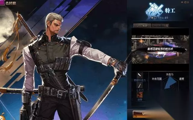暗刃是一个使用长刀,有轻甲精通的物理系职业。 从官方给的宣传视频来看,这是一个偏向于华丽连击的职业,打击感很强,有着不错的攻击范围和不错的攻击力,官方的宣传MV中将他称为无所不能的解决大师。有点类似女鬼剑中的剑豪,职业自身的移动速度不快,攻击速度因为是带着长刀的缘故只能说是一般般。 暗刃的混团能力还是不错的,本身是一个25仔,聚怪连击爆发样样都有,追求华丽的玩家可以尝试一下这个职业。 2.特工