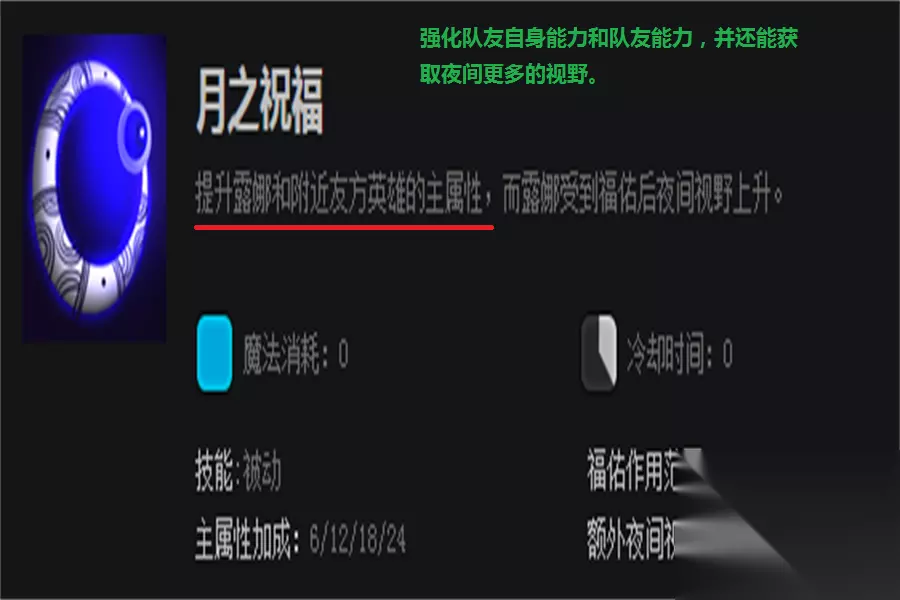 3技能,这个被动可以提升队友和自身的主属性,什么是主属性?就是看你自己是什么属性的英雄,露娜属于敏捷英雄,那么提升的主属性就是敏捷。推荐副升。