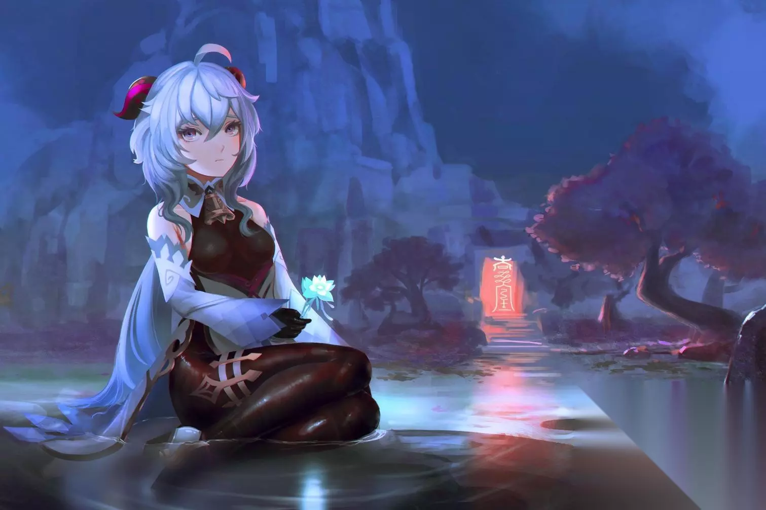 为何玩家都叫她椰羊? ·初见七七 由于甘雨是人与仙相爱的孩子,所以从某种意义上说,她是半人半仙。从外表来看,她有人类的外形、相貌等特征。但是从细节来看,她又保留了仙家的特点,麒麟角。毕竟璃月的“三眼五显真君”不都是以动物的形象展现在我们的面前吗? 当然,说起甘雨是“椰羊”,还得从首次见到七七说起。由于要帮钟离置办送仙典仪的物品永生香,所以去到了璃月的著名药房【不卜庐】。但是到了之后并没有见到掌柜白术。见到的是个子还没柜台高的七七。