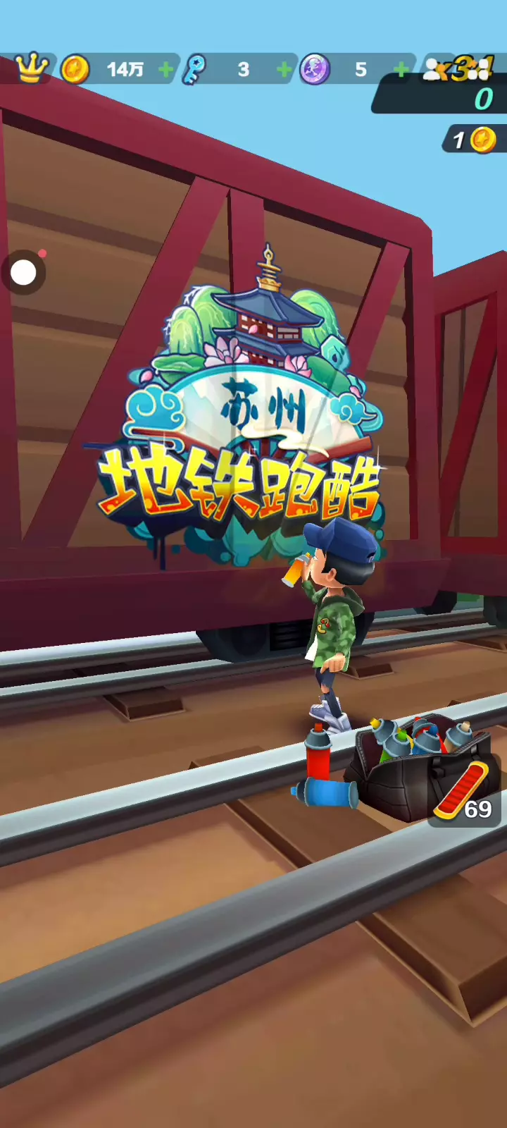这是一篇地铁跑酷的游戏日常帖,展示了苏州地图的跑酷过程,玩家使用新春风格角色在轨道上收集金币、完成任务,还晒出了自己的游戏得分与高分榜排名,分享跑酷乐趣。