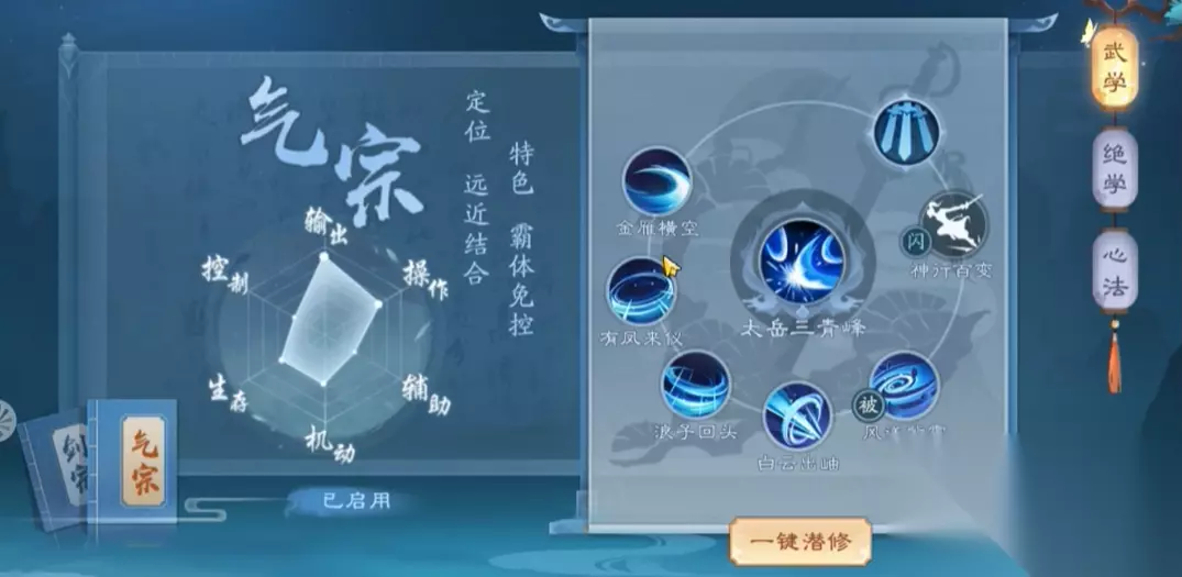 华山派作为核心门派之一,其心法系统直接影响角色的战斗表现。剑宗与气宗两大流派在心法选择上存在明显差异,剑宗侧重爆发输出与连招衔接,气宗则注重远程消耗与霸体续航。合理搭配心法天赋能最大化职业特性,无论是PVP还是PVE环境都能发挥关键作用。