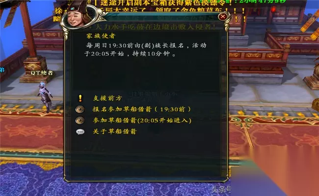 《御龙在天》手游作为一款深受玩家喜爱的角色扮演游戏,其丰富的游戏玩法和互动性吸引着无数玩家。今天,我们将聚焦于游戏中一个独特的活动——草船借箭。这个活动不仅考验玩家的智慧和策略,还能带给玩家丰厚的奖励和 *** 的挑战。接下来,让我们一起深入了解草船借箭任务的参与方式、奖励以及注意事项,助你在游戏中取得更好的成绩。 每周会进行一次,需要周日19点30之前报名。可以获得大量个人经验、家族资金、绑银、家族功勋,也是一个回报率很高的活动,不管回归还是老牌御龙族们都要积极参加的活动。