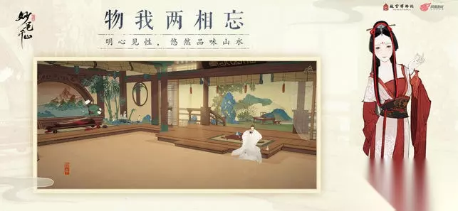 游戏画风 游戏的美术灵感来源于——中国传统绘画艺术的瑰宝。通过对大量作品的研究,尤其是对《千里江山图》构图、细节、用色、层次,还原其意境和效果,是文化与游戏的结合。 “青绿山水”作为一种中国画的技法,以矿物颜料石青和石绿为主,故此可以绘制出少见的绚丽色彩,在中国古代绘画艺术上占有一定地位,而《千里江山图》更是青绿山水发展的里程碑之作。